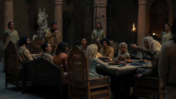Er schlägt ihnen zudem ein Geschäft vor: Daemon und seine Familie sollen Häuser und Ländereien in Pentos erhalten, wenn sie ihm im Gegenzug mit ihren Drachen gegen die erneut erstarkte Triarchie helfen.