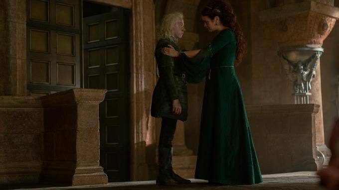 Alicent hat hingegen große Angst, dass Rhaenyra ihren Kindern etwas antun könnte, wenn sie den Eisernen Thron besteigen sollte. Sie warnt Aegon eindringlich, dass er endlich verstehen müsse, dass sein Leben auf dem Spiel stehe. Sie sagt ihm, dass er als erstgeborener Sohn des Königs der wahre Thronfolger sei. Aegon scheint allerdings immer noch nicht richtig zu verstehen, was das alles bedeutet.