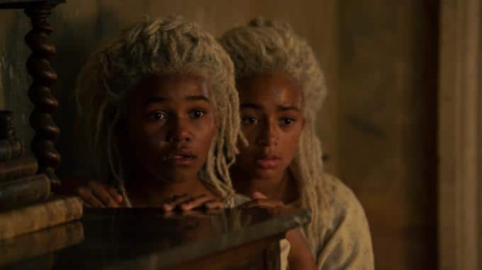 Daemon und Laena sind Eltern der beiden Töchter Baela (Shani Smethurst, links) und Rhaena (Eva Ossei-Gerning). Außerdem ist Laena mit einem dritten Kind schwanger.
