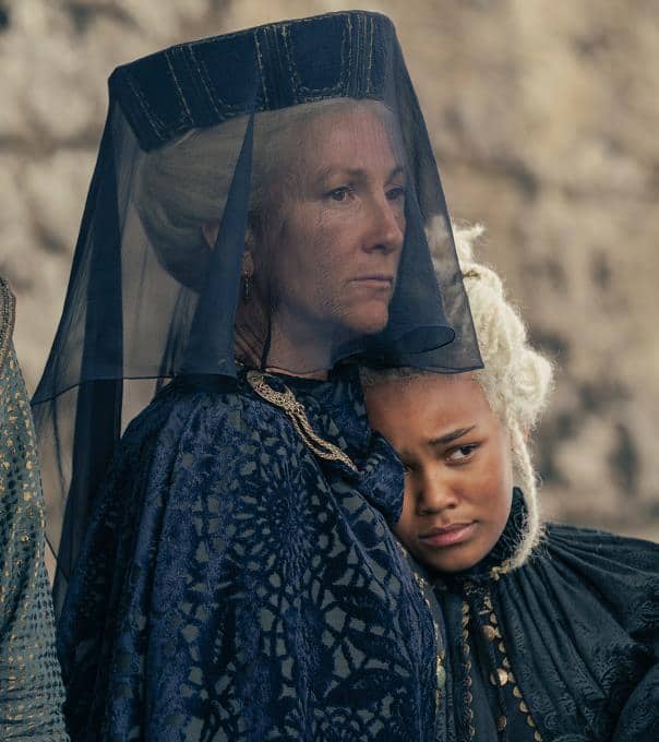 Zuvor muss Alicent sich gegenüber dem König allerdings reumütig zeigen, damit er ihr vergibt.
