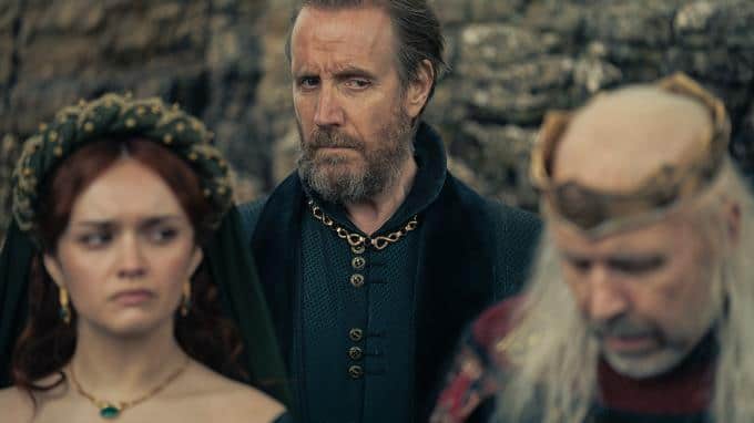 Alicents Vater Otto Hohenturm (Rhys Ifans) hat nach dem Tod von Lyonel Kraft wieder den Posten als Hand des Königs übertragen bekommen.