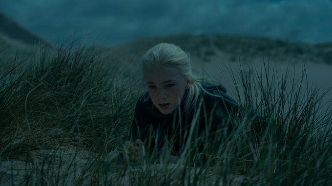 In Driftmark haben sich die Angehörigen der Häuser Velaryon und Targaryen für die Beerdigung von Laena Velaryon (Nanna Blondell) versammelt. Die Ehefrau von Daemon Targaryen (Matt Smith) ließ sich von ihrem Drachen Vhagar verbrennen, weil sie die Geburt ihres dritten Kindes nicht überlebt hätte. Nun wird ihr Sarg im Meer vor Burg Hochflut bestattet.