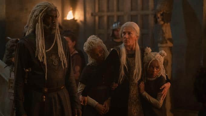 Sie bekommen jedoch deutlich die Anfeindungen der anderen Familienmitglieder zu spüren, denn alle wissen, dass die Kinder nicht von Rhaenyras Ehemann Laenor stammen.