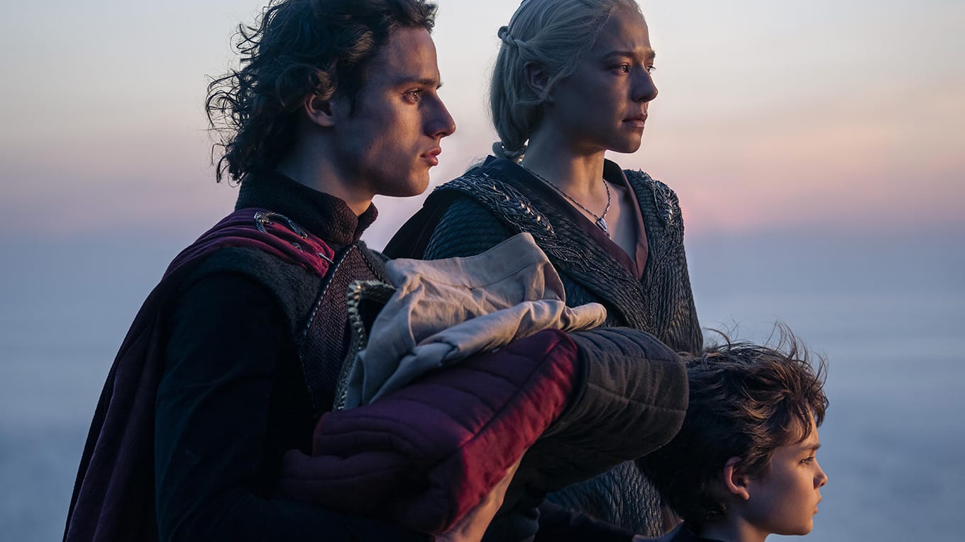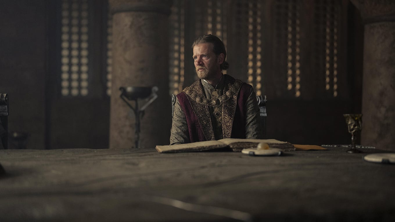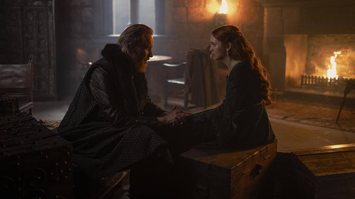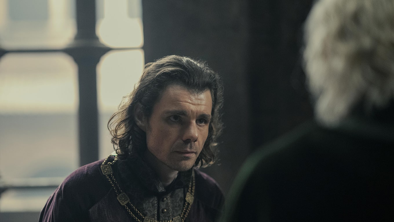 Unterdessen patrouilliert Rhaenys Velaryon (Eve Best) auf ihrem Drachen Meleys den Seeweg, um die Blockade aufrechtzuerhalten. Ihr Mann Lord Corlys (Steve Toussaint) befehligt derweil seine mächtige Schiffsflotte, um den Handelsweg nach Königsmund abzuschneiden.