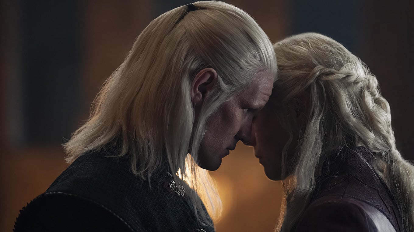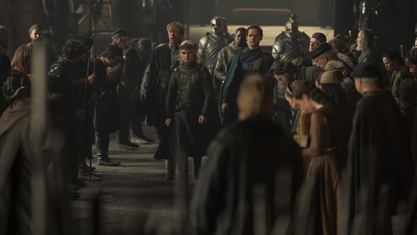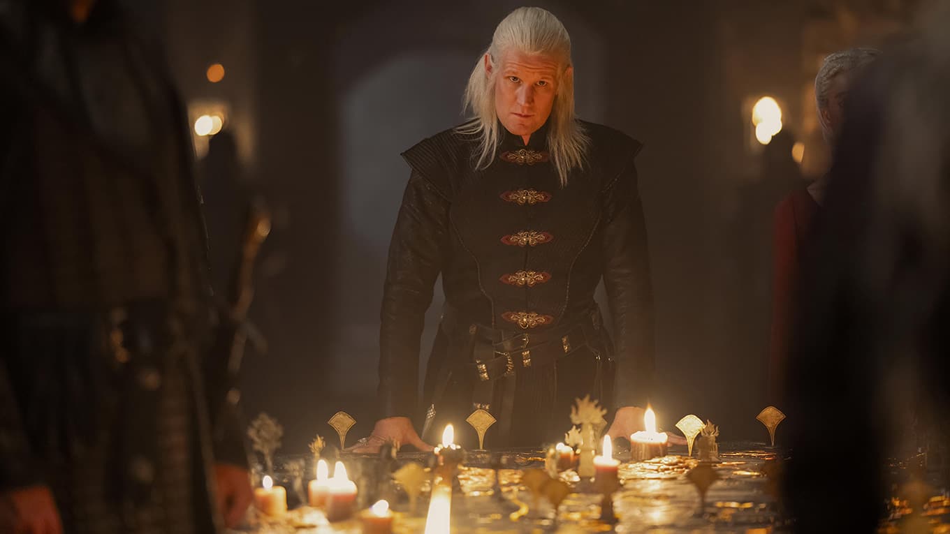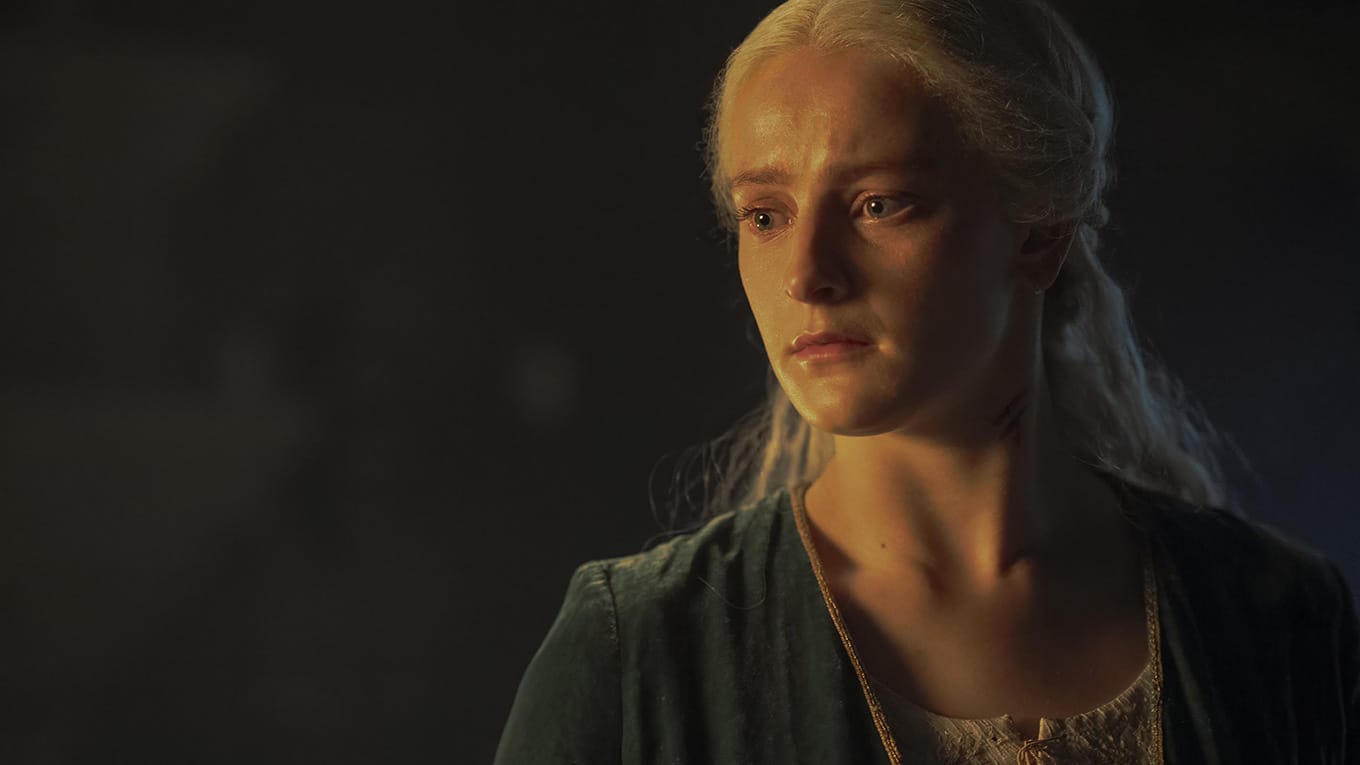 Unterdessen patrouilliert Rhaenys Velaryon (Eve Best) auf ihrem Drachen Meleys den Seeweg, um die Blockade aufrechtzuerhalten. Ihr Mann Lord Corlys (Steve Toussaint) befehligt derweil seine mächtige Schiffsflotte, um den Handelsweg nach Königsmund abzuschneiden.