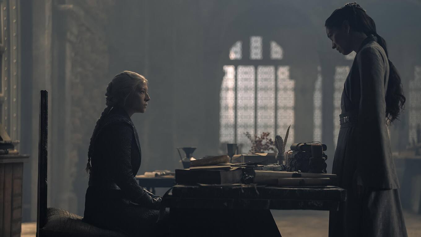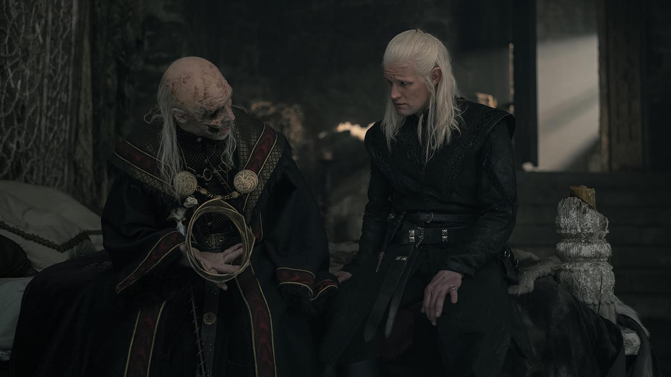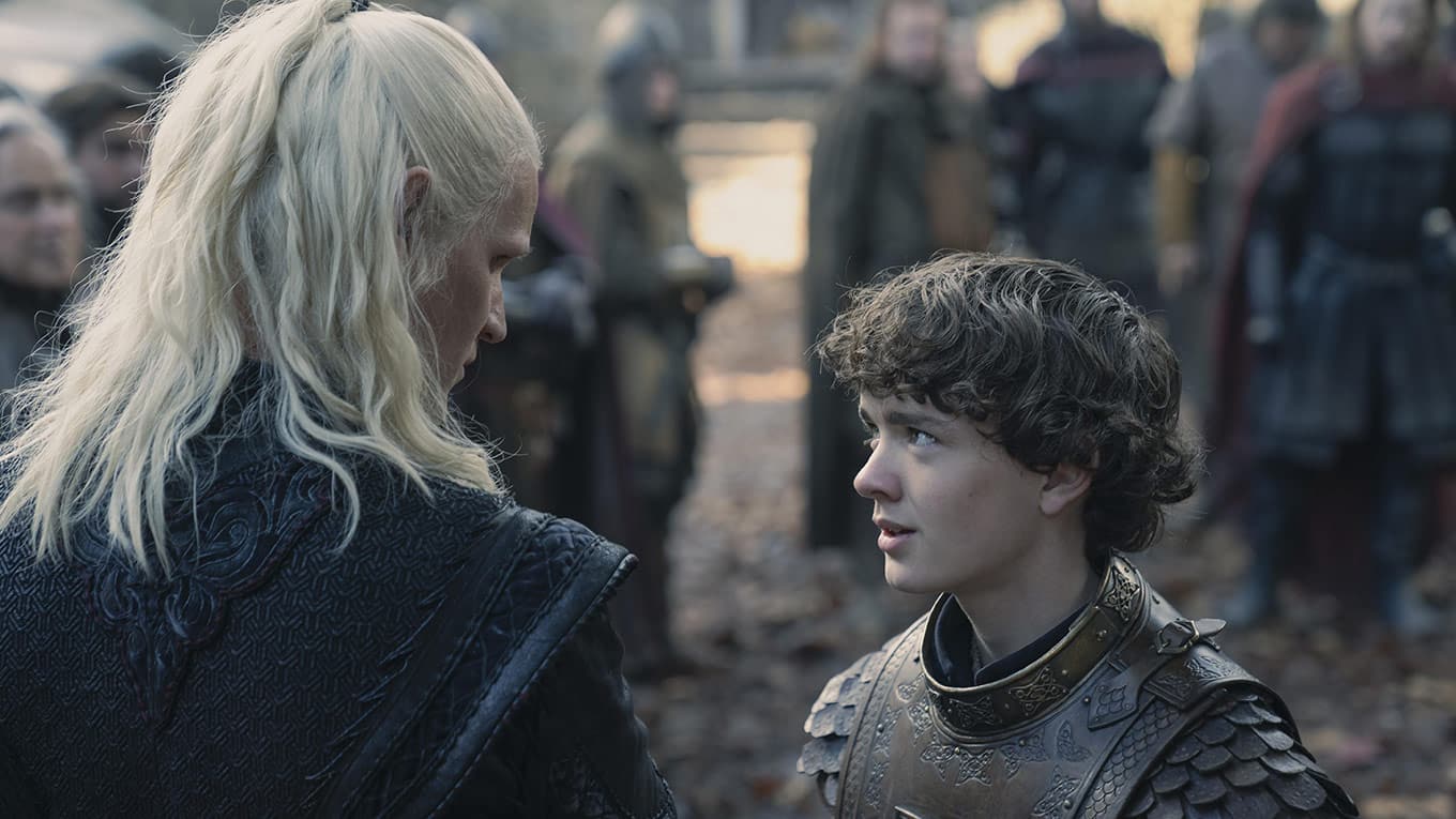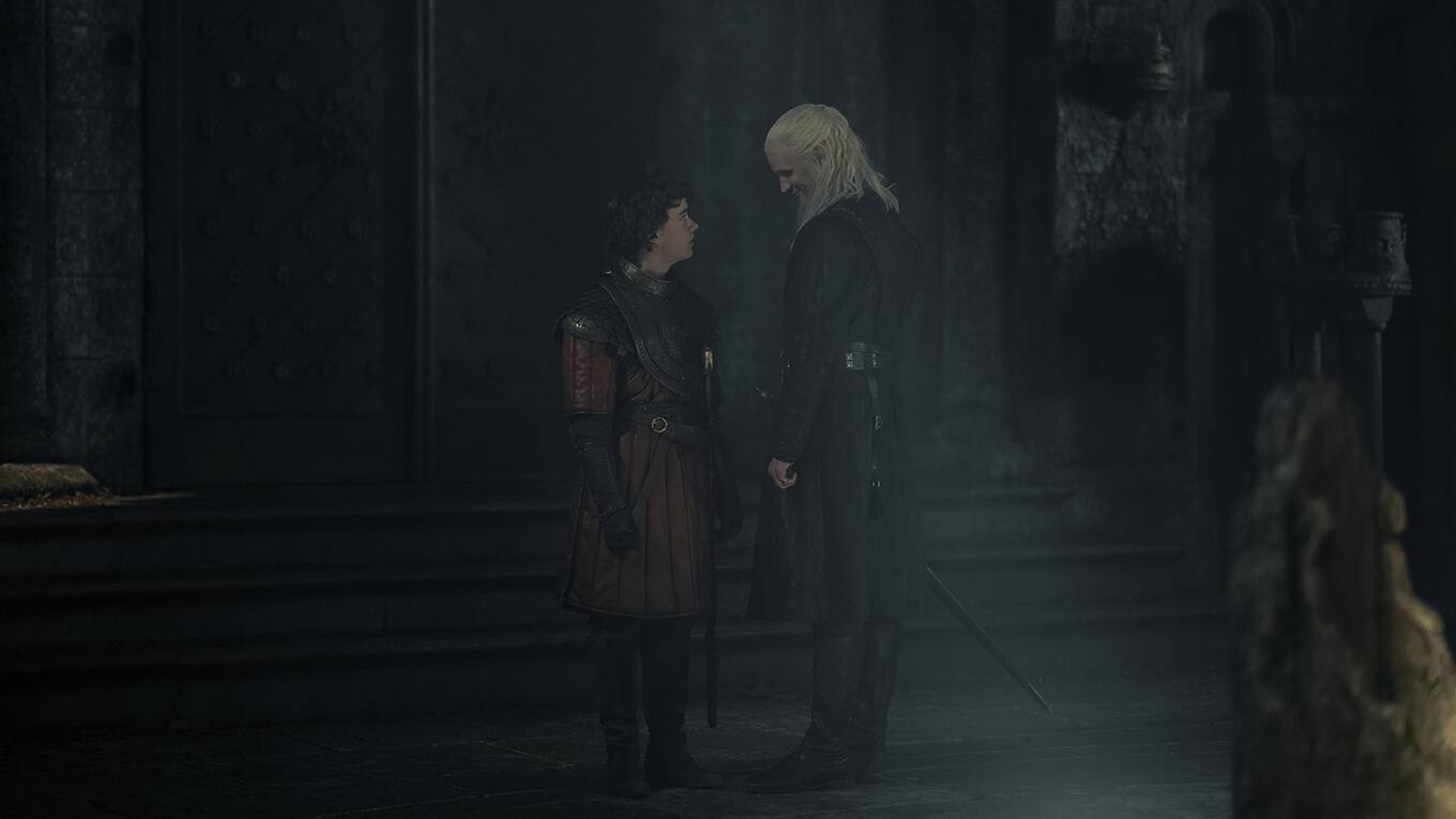 Als Jacaerys (Harry Collett) davon erfährt, stellt er seine Mutter zur Rede. Er weiß, dass er nicht Laenors Spross ist, sondern der uneheliche Sohn von Harwin Kraft (Ryan Corr). Er hat das dunkle Haar und das Aussehen von Harwin, weshalb er und seine beiden Brüder im ganzen Land verspottet werden. Seine einzige Legitimität als Targaryen ist die Tatsache, dass er ein Drachenreiter ist. Wenn nun aber jeder gewöhnliche Untertan diese Stellung einnehmen kann, sieht er seinen Anspruch auf den Thron gefährdet. Rhaenyra versichert ihm, dass sie alles dafür tun werde, damit er den Herrschaftsanspruch behält. Außerdem gibt sie zu bedenken, dass dies wahrscheinlich die einzige Möglichkeit sei, den Krieg zu gewinnen. Wenn sie die vier großen Drachen Syrax, Seerauch, Silberschwinge und Vermithor samt Reiter in den Kampf schicke, würden sie den Krieg gewinnen können. Sie hofft, dass Aemond (Ewan Mitchell) und Team Grün sich in diesem Fall geschlagen geben und so weiteres Blutvergießen verhindert wird.