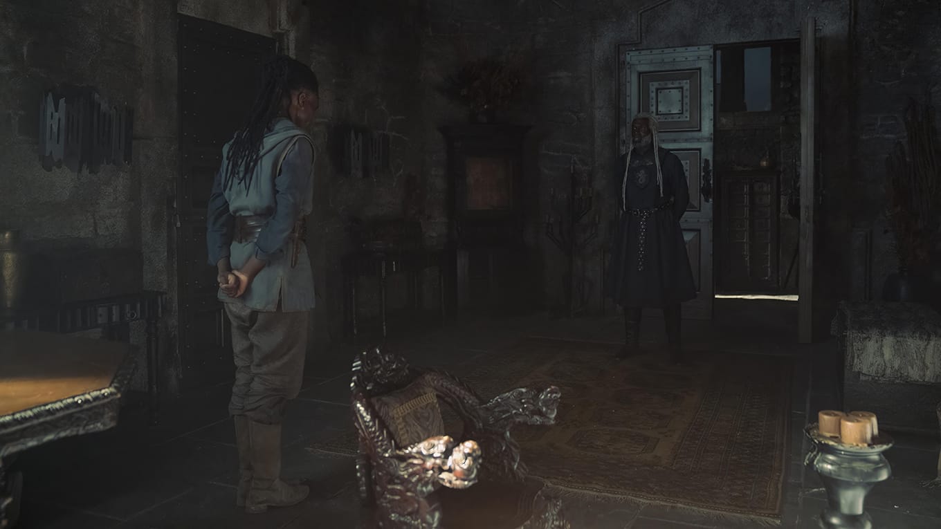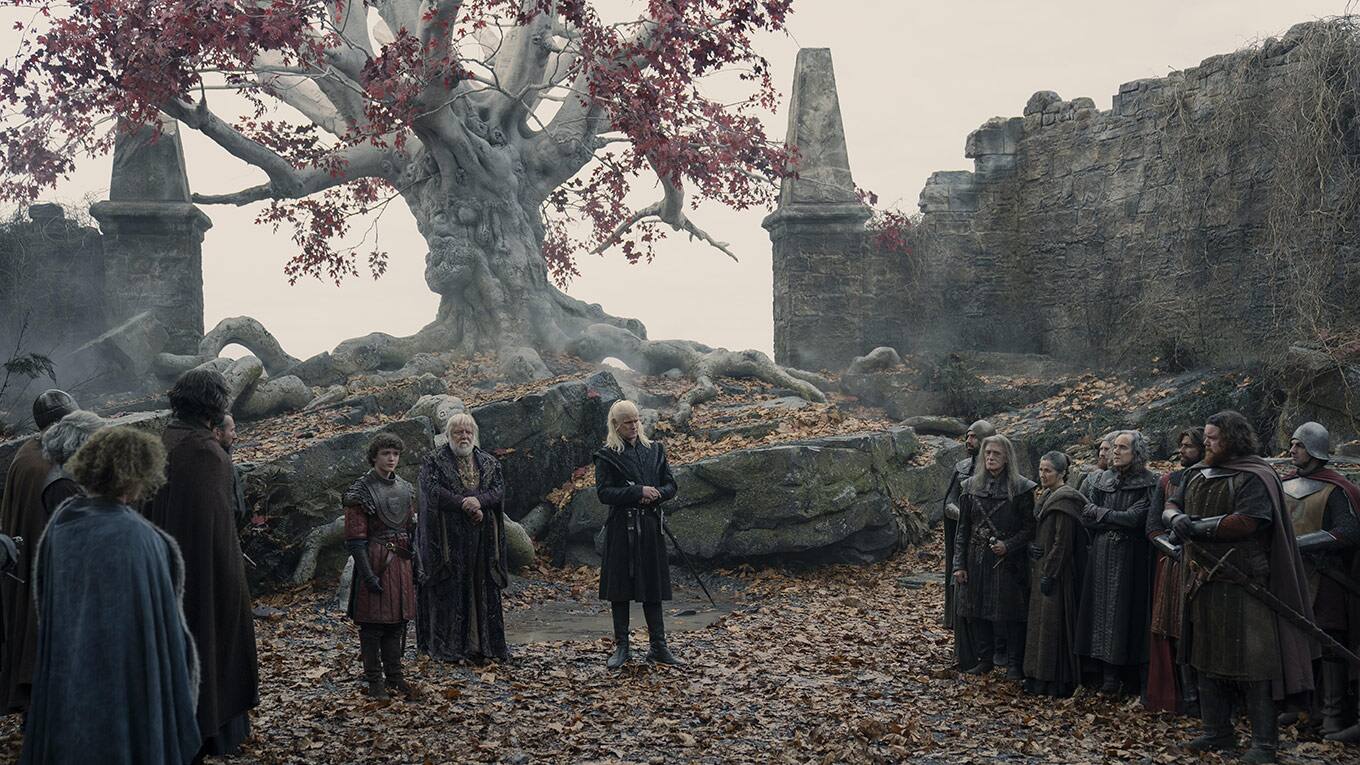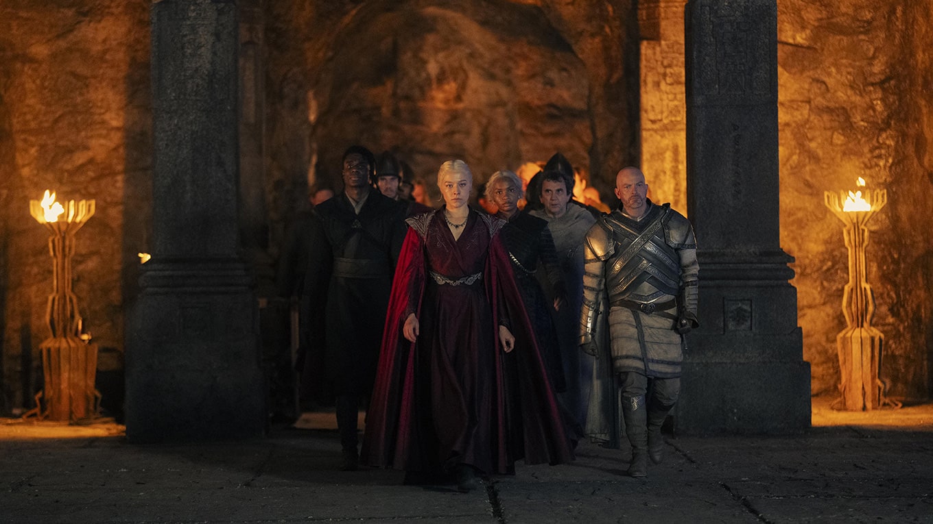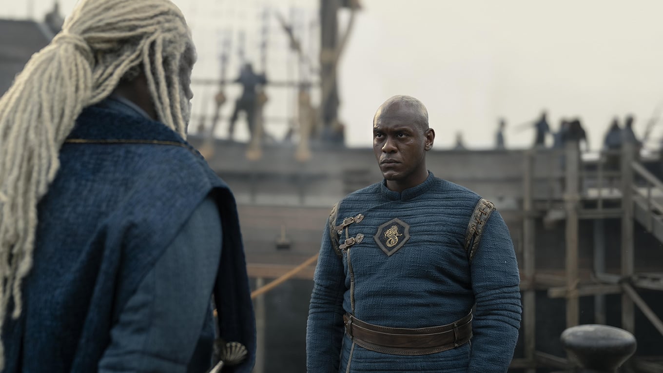 Als Jacaerys (Harry Collett) davon erfährt, stellt er seine Mutter zur Rede. Er weiß, dass er nicht Laenors Spross ist, sondern der uneheliche Sohn von Harwin Kraft (Ryan Corr). Er hat das dunkle Haar und das Aussehen von Harwin, weshalb er und seine beiden Brüder im ganzen Land verspottet werden. Seine einzige Legitimität als Targaryen ist die Tatsache, dass er ein Drachenreiter ist. Wenn nun aber jeder gewöhnliche Untertan diese Stellung einnehmen kann, sieht er seinen Anspruch auf den Thron gefährdet. Rhaenyra versichert ihm, dass sie alles dafür tun werde, damit er den Herrschaftsanspruch behält. Außerdem gibt sie zu bedenken, dass dies wahrscheinlich die einzige Möglichkeit sei, den Krieg zu gewinnen. Wenn sie die vier großen Drachen Syrax, Seerauch, Silberschwinge und Vermithor samt Reiter in den Kampf schicke, würden sie den Krieg gewinnen können. Sie hofft, dass Aemond (Ewan Mitchell) und Team Grün sich in diesem Fall geschlagen geben und so weiteres Blutvergießen verhindert wird.