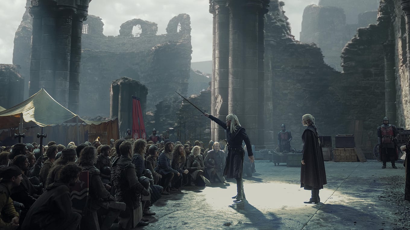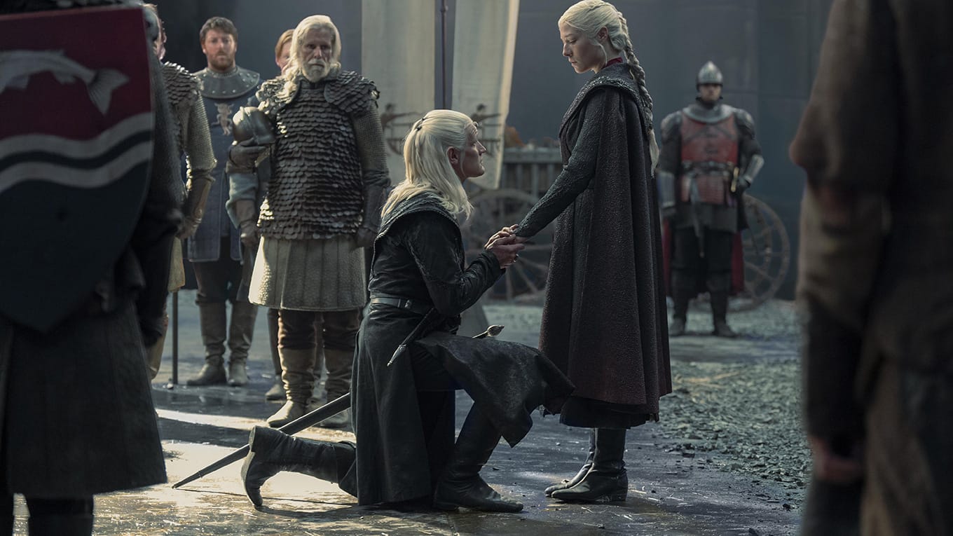 Rhaenyra hat von Ser Simon Kraft (Simon Russell) die Nachricht erhalten, dass Daemon möglicherweise einen Verrat plant. Die Königin muss nun handeln und reitet auf Syrax und in Begleitung von Addam und Seerauch nach Harrenhal. Als sie dort eintrifft, sieht sie die riesige Armee, die ihr Mann zusammenstellen konnte. In der Halle der Burg konfrontiert Rhaenyra ihn vor seinen Soldaten mit der Frage, für wen er kämpft. Daemons Zeit auf Harrenhal und die Prophezeiung für das Schicksal von Westeros haben ihn verändert und einsichtig gemacht. Er antwortet ihr auf valyrisch, dass er die zukünftige Bedrohung für Westeros gesehen hat und das Reich jemanden brauche, der es vereint. Rhaenyra sei diese Person und damit die einzig wahre Königin. Anschließend kniet er vor ihr nieder und schwört ihr seine uneingeschränkte Treue sowie die Ergebenheit seiner Armee.