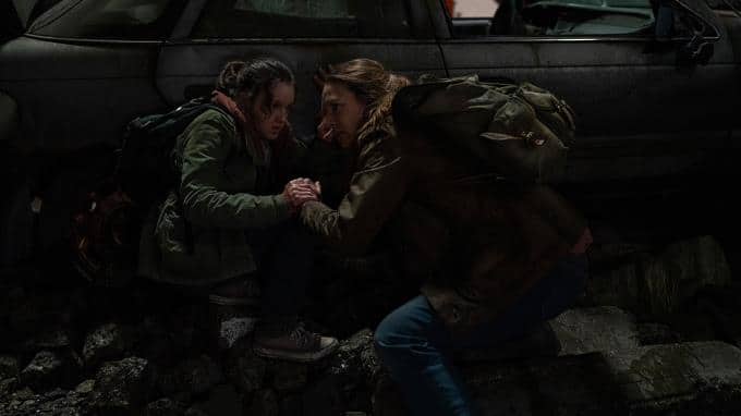 In der Dunkelheit schleichen sich die drei vor die Mauern der Stadt. In der Pufferzone des Quarantänegebiets sind viele Soldaten unterwegs auf Kontrollgängen. Sie werden von Soldat Lee entdeckt. Er zwingt sie auf die Knie und testet mit einem Gerät, ob sie infiziert sind. Tess und Joel sind gesund. Als Lee das Mädchen testet, rammt sie ihm ein Messer ins Bein. Wütend richtet Lee seine Waffe auf Ellie. In dem Moment fühlt sich Joel in die Nacht zurückversetzt, als ein Soldat seine Tochter erschoss. Joel rastet daraufhin aus und schlägt auf Lee so lange ein, bis dieser regungslos liegen bleibt. Tess findet derweil das Gerät des Soldaten. Es zeigt an, dass Ellie infiziert ist. Verzweifelt erklärt die 14-Jährige ihnen, dass sie nicht krank sei. Sie zeigt ihnen ihre Wunde, an der sie von einem Pilz befallen wurde. Die Infektion ist aber seit drei Wochen nicht weiter vorangeschritten. Niemand würde dies so lange überleben. Ellie scheint gegen die Pilzinfektion immun zu sein. Da die FEDRA im Anmarsch ist, bleibt ihnen keine Zeit zum Diskutieren. Joel schnappt sich Lees Waffe und gemeinsam mit Tess und Ellie verlässt er die Quarantänezone. Derweil ertönt aus dem Funkgerät in seiner Wohnung der 80er-Jahre "Depeche Mode"-Song "Never Let Me Down Again".