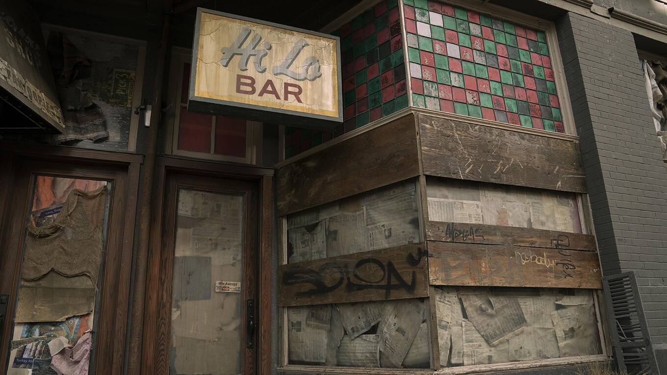 • Die beiden können sich schließlich in einer verlassenen Bar verstecken.