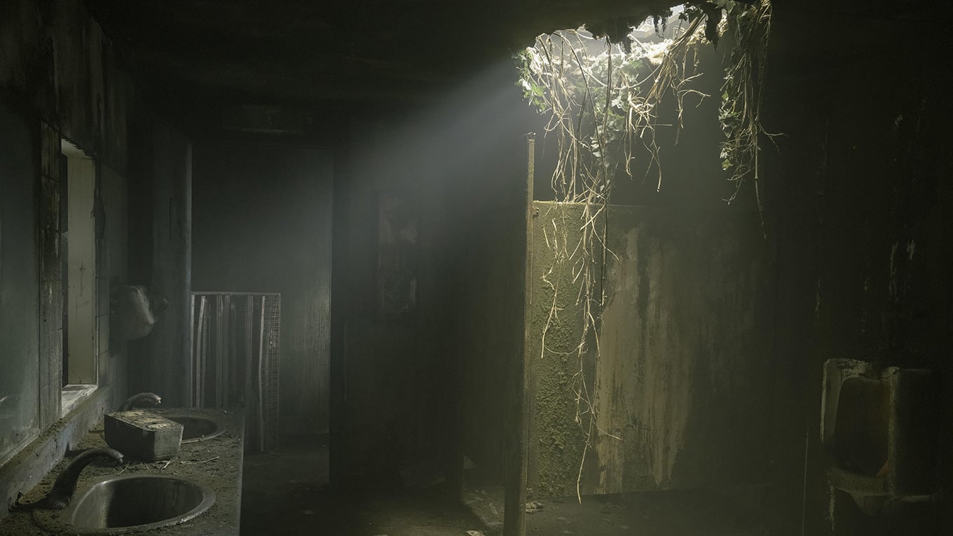 • Sämtliche Gebäude auf ihrem Weg sind heruntergekommen und zugewuchert.