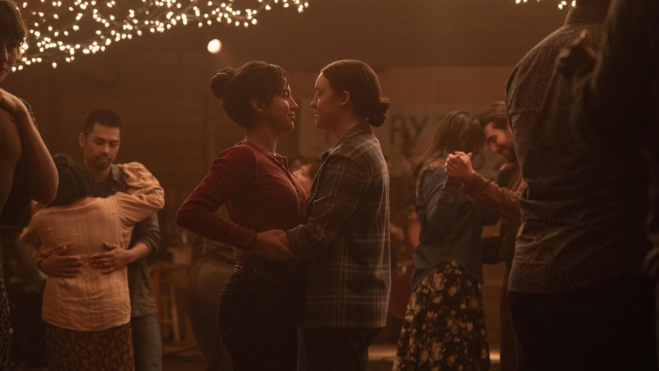 • Dina (Isabela Merced) zieht Ellie (Bella Ramsey) auf die Tanzfläche, umarmt und küsst sie. Überrascht, aber glücklich, erwidert Ellie den Kuss.