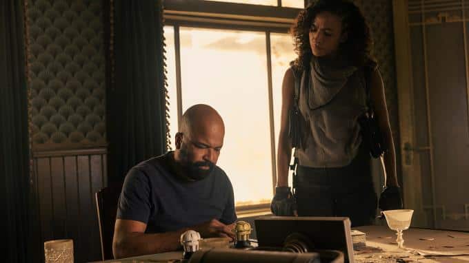Bernard (Jeffrey Wright) kennt sich in dem verlassenen Park sehr gut aus, weil er genauso aufgebaut ist wie Westworld damals. Er sucht sich das Werkzeug zusammen, um Maeve wieder zum Leben zu erwecken. Frankie aka C (Aurora Perrineau) ist zunächst noch misstrauisch.