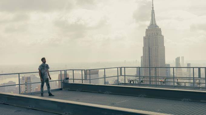 Es gelingt ihm, aus dem Gebäude auf das Dach zu fliehen.