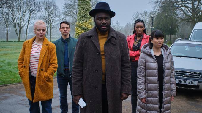 Wolfe Kinteh (Babou Ceesay, M.) und sein Team (v.l.n.r): Dot (Amanda Abbington), Steve (Adam Long), Dominique (Shaniqua Okwok), Maggy (Naomi Yang).