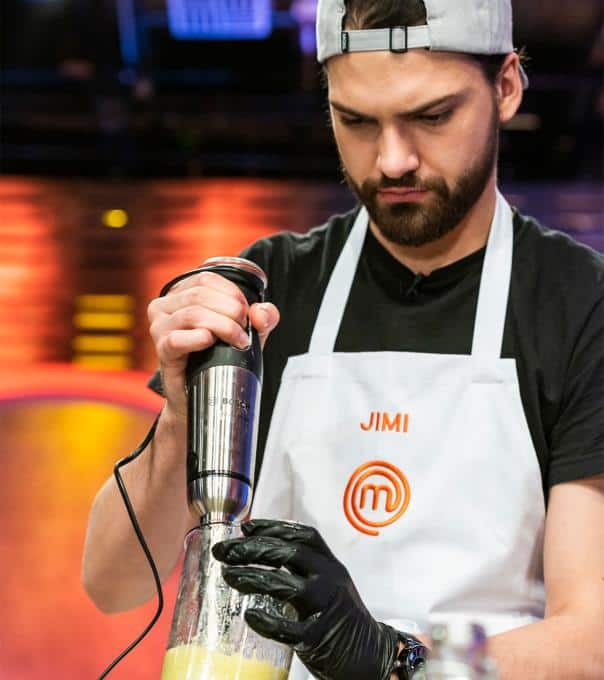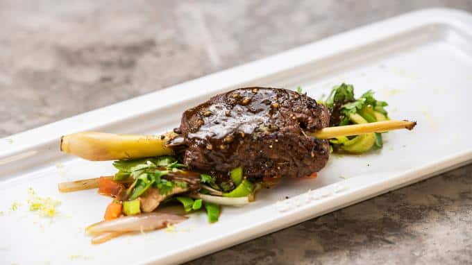 Hardy kreiert ein Filet auf Zitronengrasspieß mit Gemüse und Vinaigrette, für das er viel Lob erhält.