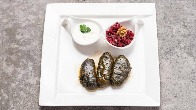 Susis Signature-Gericht (Bild): Armenische Weinblätter mit Rote-Beete-Salat. Und auch Hans bereitet ein Gericht aus seiner Heimat Ghana zu: Fufu mit Peanutbutter-Soup und Huhn.