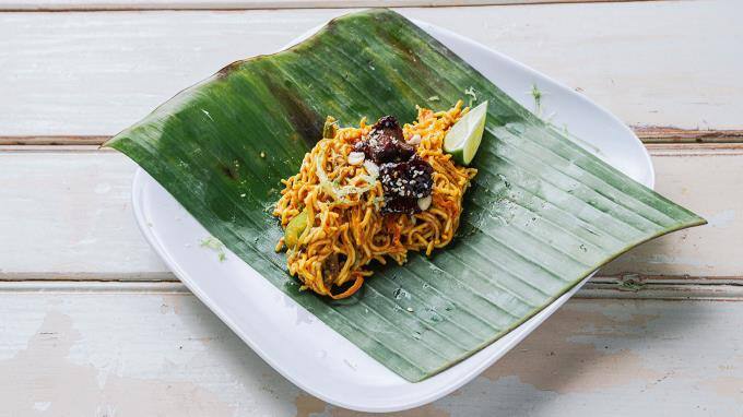 Mit "Wok auf Bananenblatt mit Garnelen und Schweinebauch" kann Team Rot zwar etwas aufholen, doch gewinnt Team Blau mit einer Stimme mehr.