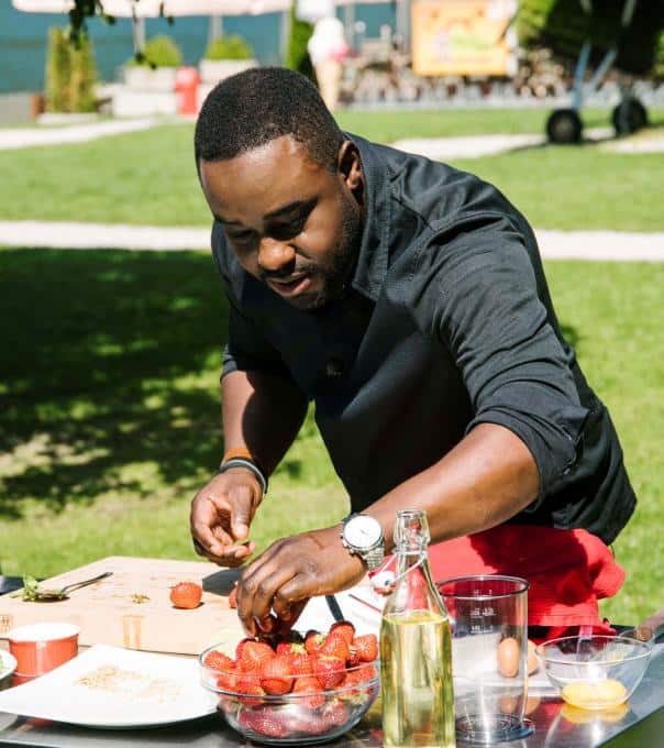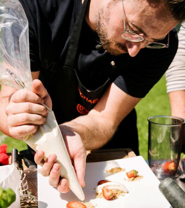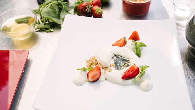 Aufgabe: Die Kandidaten müssen in 30 Minuten einen Topfenschaum mit Erbeeren und süßem Pesto zubereiten. Für Michael endet leider hier der Traum von MasterChef.