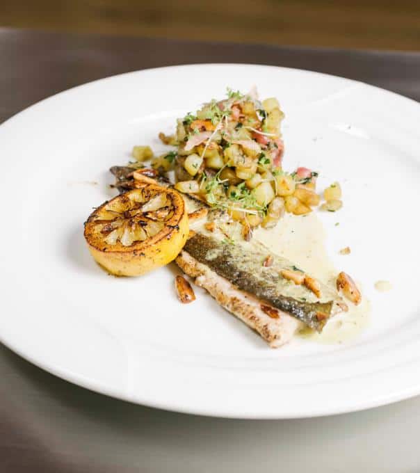 Forellenfilet mit Bratkartoffeln und Kapernsoße.