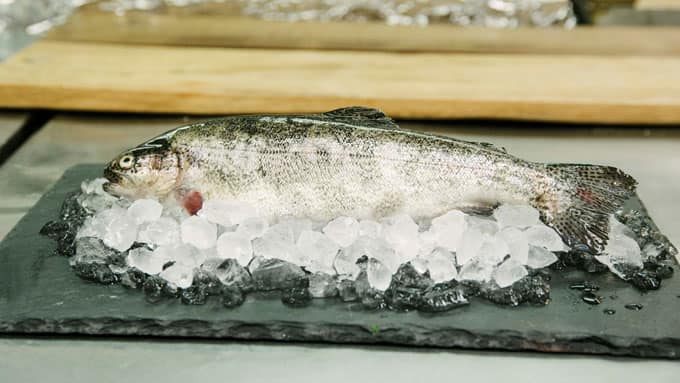 Die 4 Kandidaten haben 45 Minuten Zeit, eine frische Forelle auszunehmen, sauberzumachen und in ein Masterchef-Gericht zu verwandeln.