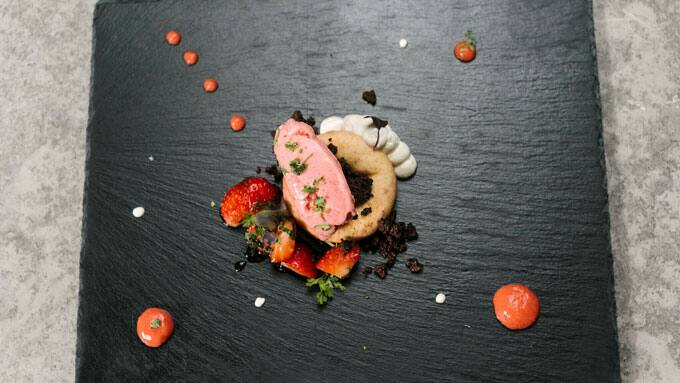 Der krönende Abschluss des finalen MasterChef-Menüs ist das Dessert. Manuels Meisterstück: Savarin und dreierlei Variationen von der Erdbeere: Eis, Ragout und Gel.