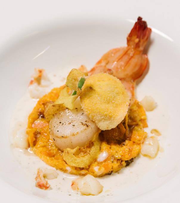Karen geht mit "Langustino mit Jakobsmuschel auf Karottenkonfit" ins Rennen.