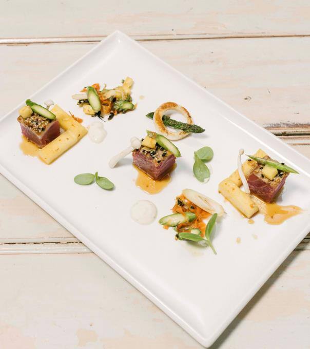 Wilfried setzt auf "Thunfisch in Würzkruste mit Spargel-Mangosalat und Wasabicreme".