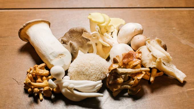 Darunter befindet sich ein bunter Mix aus Pilzen.
