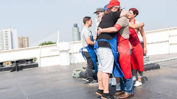 Tobias: "Heißt das, wir haben gewonnen?" Team blau kann es kaum fassen. Trotz Nelsons heftiger Kritik, heißt der Gewinner am Ende Team blau. Der Geschmack hat die Crew der "SS Rotterdam" überzeugt.