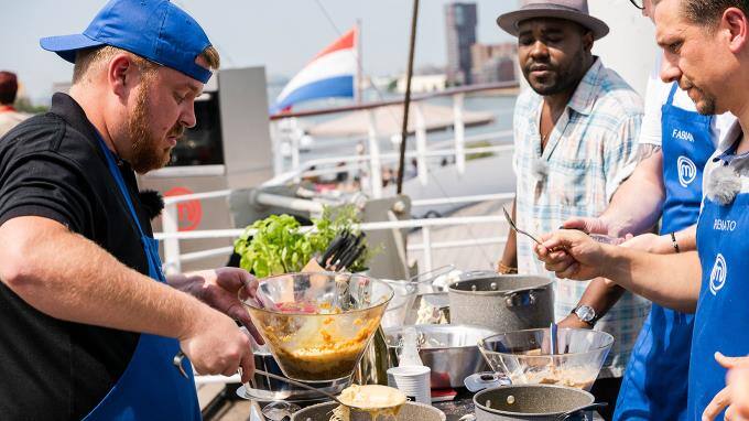 Die Juroren begrüßen die Kandidaten auf der Terrasse des Hotel New York in Rotterdam. Das Thema Heute: Das Essen unserer niederländischen Nachbarn! Der Küchenchef des Hotels serviert den Kandidaten seine legendären Bitterballen. Die Aufgabe: Jedes Team macht in 60 Minuten drei verschiedene Bitterballen mit Dips, dazu den traditionellen holländischen Stampott. Die Kandidaten machen sich auf zum Ort der Challenge, denn die Testesser sind die Besatzungsmitglieder der im Hafen liegenden SS Rotterdam!