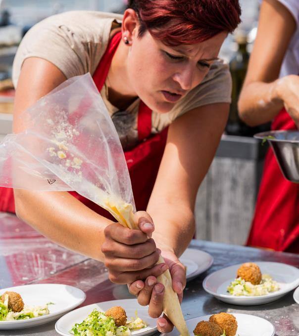 Jedes Team muss in 60 Minuten drei verschiedene Bitterballen mit Dips herstellen und dazu noch den traditionellen holländischen Stamppot zubereiten. Der Marktstand ist reich gefüllt.