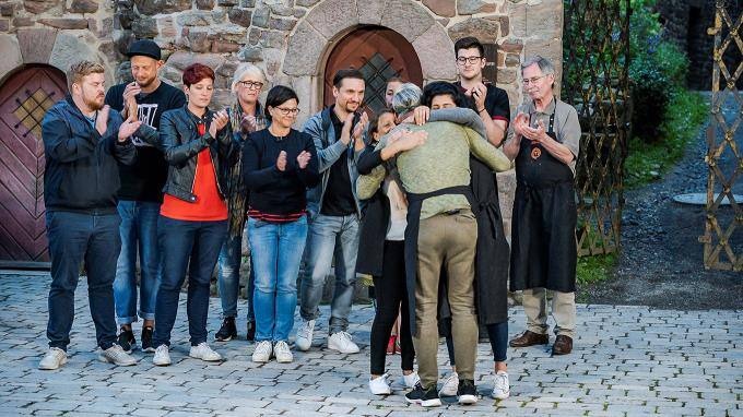 Für die nächste Außenchallenge verschlägt es die Köche auf die Leuchtenburg nach Thüringen. Die Teams haben 75 Minuten Zeit, um aus regionalen Produkten ein Zweigänge-Menü für 19 Personen vorzubereiten. Als Hauptzutaten bekommen die Kandidaten Regenbogenforelle, Flank Steak und Iberico Karree. Doch keines der Teams bekleckert sich mit Ruhm. Im Gegenteil sie sorgen eher für einen verzweifelten Ralf Zacherl. Irgendwie schaffen es die chaotischen Teams aber doch ein Gericht zu servieren und die Gäste dürfen abstimmen. Ganz knapp, mit nur einer Stimme, gewinnt das Team blau.