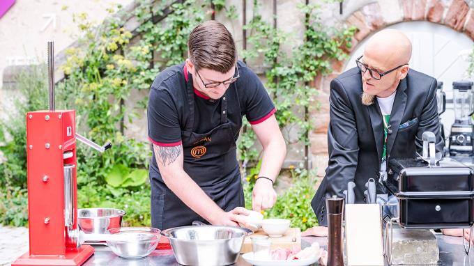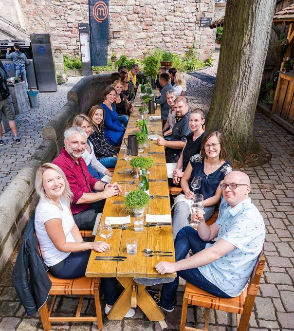 Die nächste Challenge steht an. Die Teams müssen in 75 Minuten ein Zweigänge-Menü für 19 lokale Gourmets vom Verein "Thüringer Tischkultur" zaubern.
