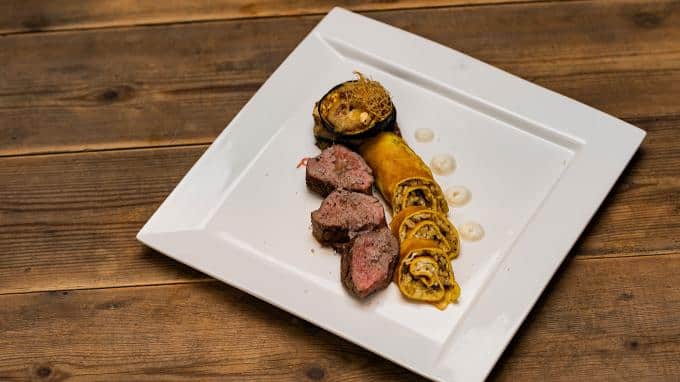 Et voilà: Alis Lammfilet mit Auberginengemüse, Joghurt und Salat.