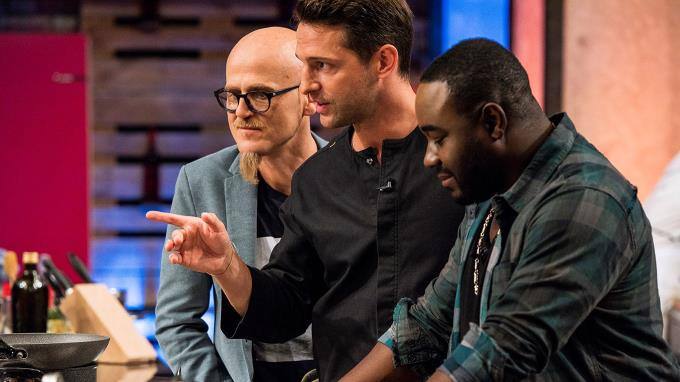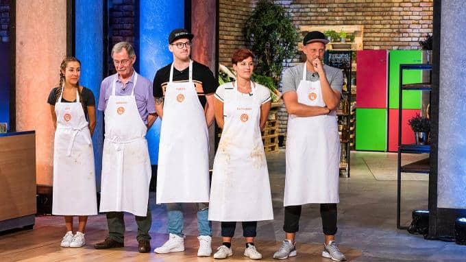 Für die restlichen fünf Kandidaten wird es Zeit, in die schwarzen Schürzen zu schlüpfen. Die Aufgabe hat es in sich: sie können aus zehn Zutaten wählen. Dahinter befindet sich allerdings eine weitere Zutat, die aber noch verdeckt ist.