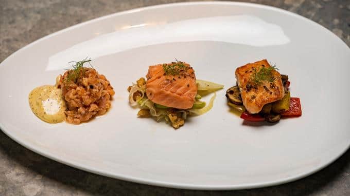 Maria: "Es war ein Teller dabei, wo wir zu 100 Prozent sagen können: das gehört definitiv zur Top 10. Dieser Teller ist von Renato." Sein Dreierlei vom Lachs – Tatar confiert und mit Pfannengemüse gebraten – ist ein Volltreffer.