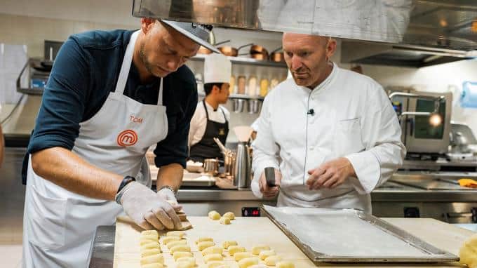 Die Top 3 der MasterClass: Tom, Tobias und Katharina auf dem Weg zur letzten Außenchallenge bei "MasterChef". Wem gelingt der Blick über den Tellerrand und wer muss so kurz vorm Ziel den Wettbewerb verlassen?