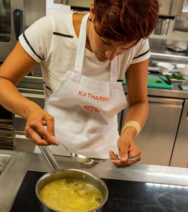 Jetzt muss sich Katharina in Alfios Küche beim Pasta-Gericht beweisen. Katharina: "So nervös wie heute war ich noch nie bis jetzt. Die Angst zu scheitern ist riesengroß. Jetzt noch rauszufliegen, dass wäre einfach zu traurig."